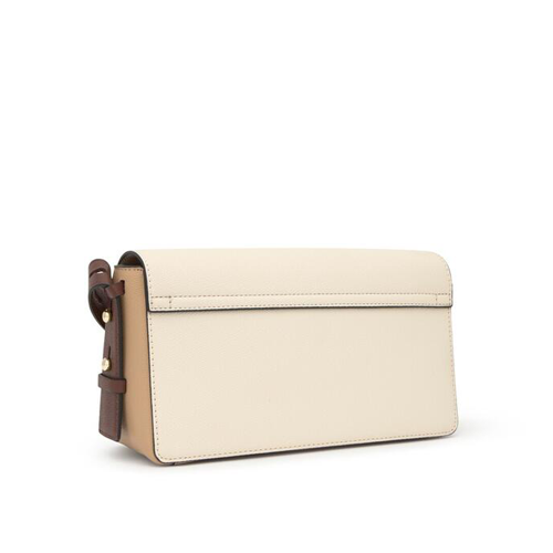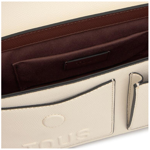 Bolso bandolera mediano TOUS Back to basics de poliuretano en color beige y marrón. Cierre de solapa con botón magnético. Bolsillo interior abierto. Dos bolsillos exteriores abiertos. Asa bandolera ajustable. Medidas (alto x ancho x fondo): 14 x 29 x 9 cm.
