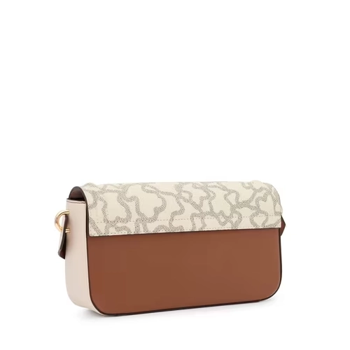 Bolso bandolera TOUS mediano de lona con estampado Kaos en color beige y negro con detalles en piel sintética. Cierre de solapa con botón magnético. Bolsillo interior abierto. Asa bandolera ajustable.