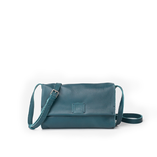 Formato rectangular, bandolera ajustable, solapa con boton, y cierre con cremallera. Bolsillos internos, y forro de algodón.