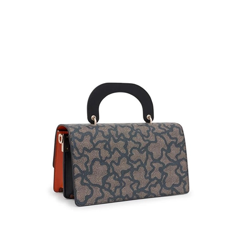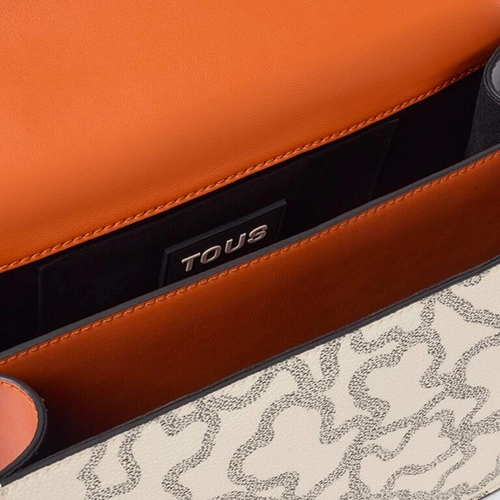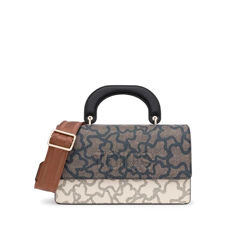La bandolera Tous M. Solapa Kaos Icon es de lona con estampado en color beige y negro y detalles en piel sintética Kaos Icon. Cierre de botones magnéticos.