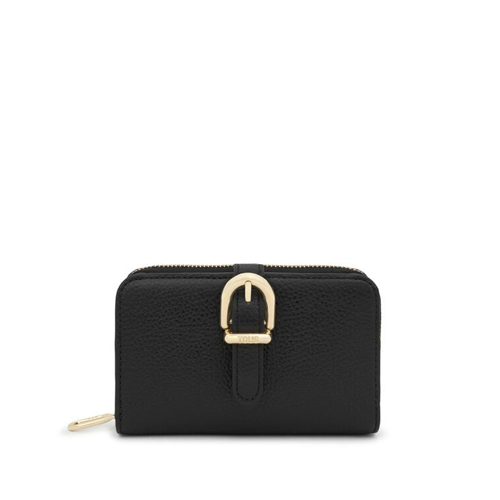 Billetera M TOUS Buckles piel vacuna con certificación LWG en color negro. Cierre de cremallera. En el interior contiene un compartimento para billetes, ocho ranuras para tarjetas y dos compartimentos para monedas.