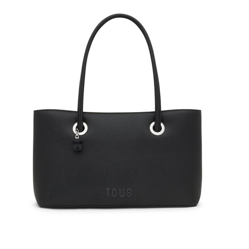 Bolso City mediano TOUS Poppy de poliuretano en color negro. Dos compartimentos con cierre de cremallera. Bolsillo interior abierto. Asas fijas de mano y asa bandolera ajustable y desmontable