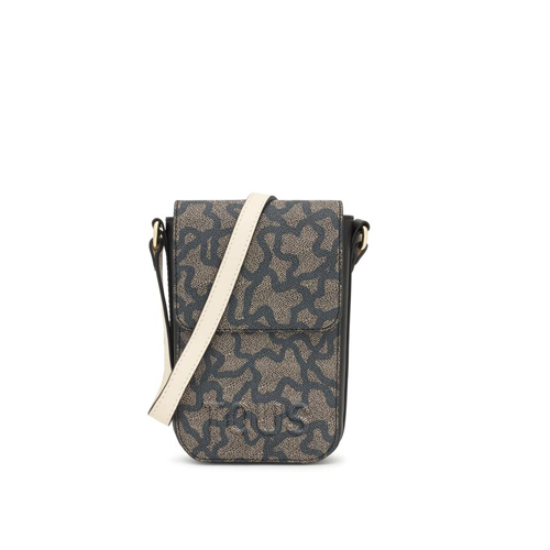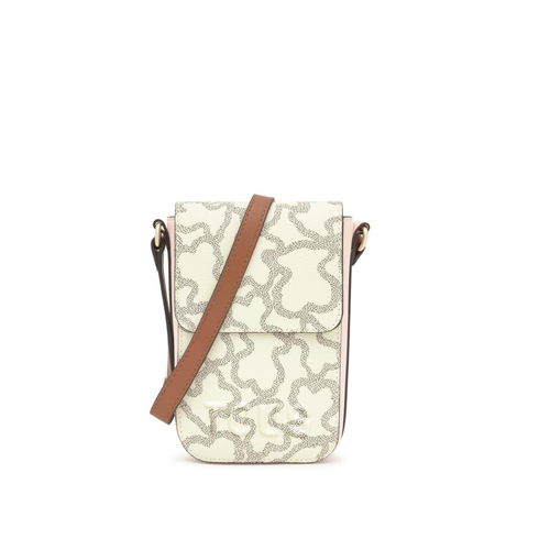 La funda portamóvil Tous colgante Kaos Icon es de lona con detalles de poliuretano en color beige. Cierre de botón magnético. Tiene dos ranuras para tarjetas, una de ellas transparente. Asa bandolera ajustable.