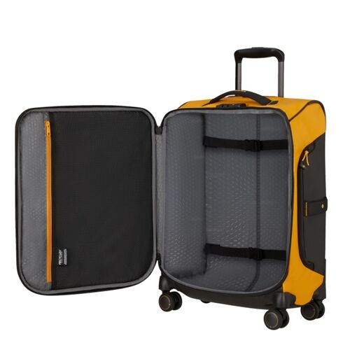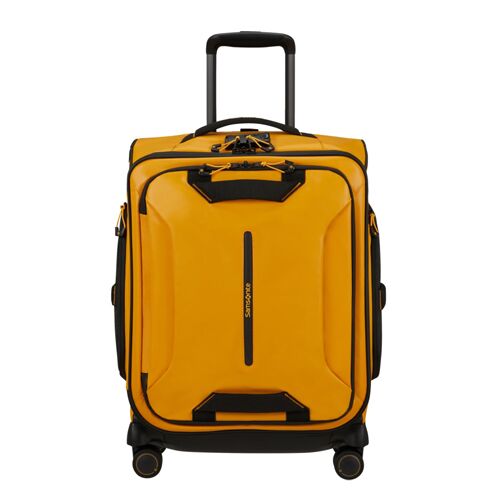 Te presentamos la maleta cabina Samsonite Ecodiver amarillo 4 ruedas dobles. La innovadora línea Ecodiver surge combinando practicidad, un diseño elegante y la seguridad asegurada en cada uno de tus viajes. Una gama perfecta para las aventuras al aire libre o la ciudad gracias a su revestimiento repelente al agua y cremalleras termoselladas. Completa el pack con la mochila Ecodiver.